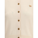 Maison Kitsuné’s Baby Fox Cardigan is a versatile garment with a clean, contemporary style. It features a front button closure and the iconic fox stitched on the front, a distinctive detail that adds a touch of personality to the essential design.