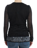 Schwarzer Wollmischung Stretch Langarm Pullover