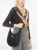 black chevron pattern VLogo Signature plaque adjustable shoulder strap stud detailing leather Hoboho small leather shoulder bag Size and Fit - DEPTH: 3.0 Centimetres. HEIGHT: 21.5 Centimetres. WIDTH: 28.0 Centimetres.