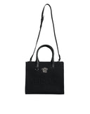 Bolso Tote Cruzado de Lona y Cuero con Logo y Asa Superior Negra