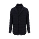 Chaqueta acolchada de Herno, cuello acanalado, doble capa en la parte delantera, cuello alto y cierre frontal con cremallera de doble cursor extraíble, cierre frontal con botones, solapas clásicas, dos bolsillos de ojal con solapa en el panel frontal, diseño acolchado y relleno en todo el conjunto, patrón monocromático, ajuste regular.