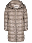 relleno de plumón beige, cierre frontal con cremallera, mangas largas, dos bolsillos laterales con abertura, largo medio, chaqueta Matilde midi de plumón