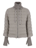 gris diseño acolchado cuello alto cierre de cremallera cierre de cordón guantes integrados sin dedos Capa de nailon