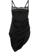 Minivestido de satén La Saudade Brodée de Jacquemus, con tejido de satén negro, panel de tul, bordado floral, detalles fruncidos, escote cuadrado, cierre trasero con hebilla, tirantes finos ajustables, detalles drapeados, espalda descubierta, bajo asimétrico y largo por encima de la rodilla. Talla y ajuste del minivestido La Saudade Brodée - Esta prenda tiene un ajuste fiel a la talla. Recomendamos elegir tu talla habitual. La modelo mide 1,75 m / 5 pies 8 pulgadas y lleva la talla 36 (FR).