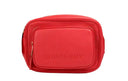 Pequeño bolso bandolera de cámara de cuero granulado rojo brillante de marca
