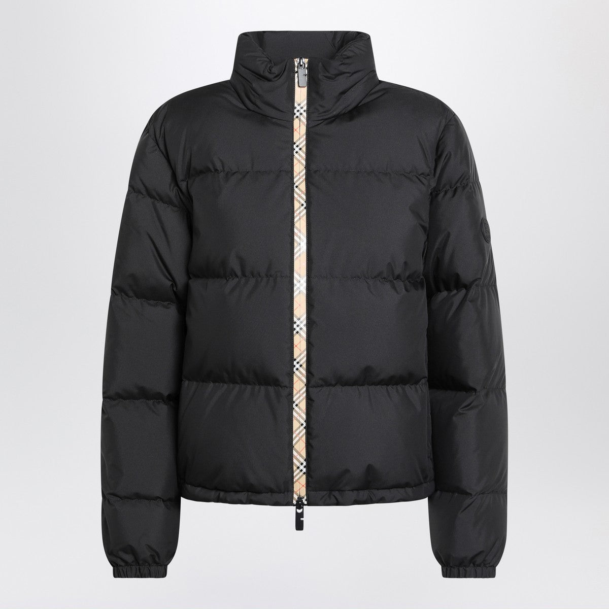 Burberry Black zip-up puffer jacket with Check detail
