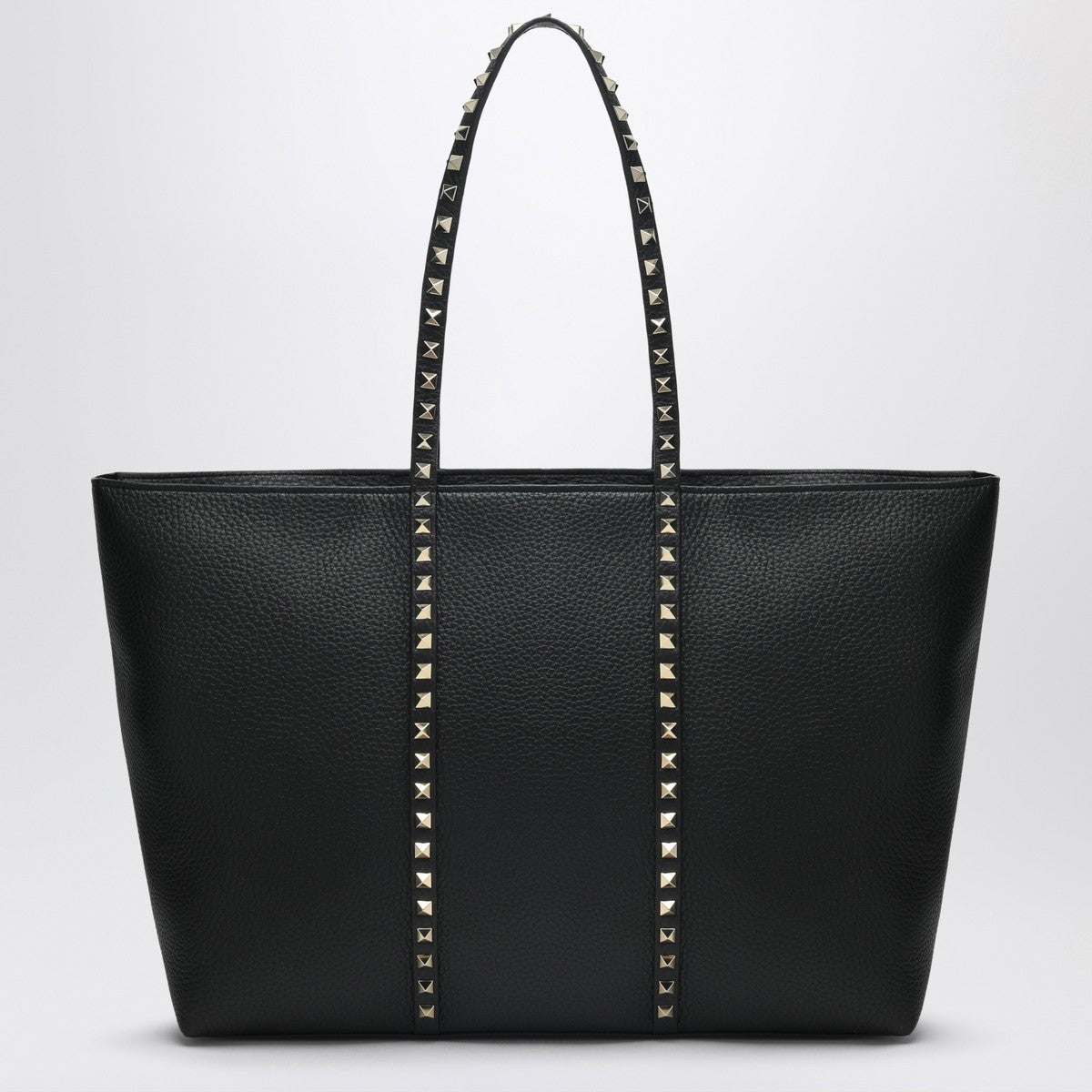 Medium tote bag by Valentino Garavani in black leather featuring two leather handles with stud decoration, a zip fastening, a zipped welt pocket and a front logo print. Size and Fit - Width 48 cm x Height 27,5 cm x Depth 12,5 cm Handle drop: 28 cm