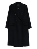 dark blue double-breasted fastening long sleeves patch pockets straight hem wool material Arianna wool coat