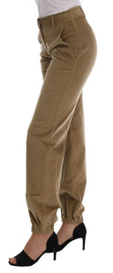 Pantaloni Skinny Marroni in Cotone a Vita Alta