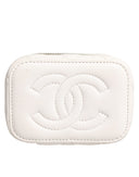 Specchio da borsa a tracolla in pelle di agnello matelassé bianco con catena dorata