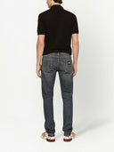 polo in cotone piqué nero con placca logo in tono argento colletto polo con patta frontale con bottoni maniche corte orlo dritto Polo in cotone con logo