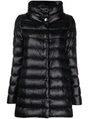 imbottitura in piuma d'oca nera design trapuntato con logo in piastra collo alto chiusura frontale nascosta con bottoni a pressione maniche lunghe due tasche laterali con cerniera orlo asimmetrico fodera completa Giacca imbottita Ameli midi Taglia e vestibilità - LUNGHEZZA MANICA: 85,0 centimetri. LUNGHEZZA: 84,0 centimetri. VITA: 108,0 centimetri. BUSTO: 102,0 centimetri.