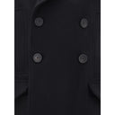 Il cappotto lungo in lana Officer di Rick Owens si distingue per le ampie rever e la chiusura doppiopetto con bottoni, che conferiscono al capo un'eleganza strutturata. Il design è completato da quattro tasche a filetto sul davanti e da uno spacco sul retro, per un perfetto equilibrio tra stile e funzionalità.
