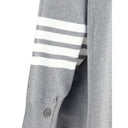 Il cardigan oversize di Thom Browne presenta un elegante scollo a V e una chiusura frontale con bottoni. Il capo è impreziosito da un dettaglio in gros-grain a righe sotto la patta e spalle raglan, che ne esaltano il design contemporaneo. Il distintivo dettaglio bianco 4-Bar sulla manica sinistra e la linguetta in gros-grain a righe dietro il colletto aggiungono un tocco caratteristico. Con due tasche applicate sul davanti e bordi a coste, questo cardigan unisce stile e comfort in modo raffinato.