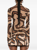 beige stampa Labirinto bordo arricciato collo alto maniche lunghe abito midi stampato semi-trasparente