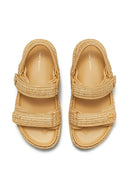 design intrecciato in rafia beige sabbia hardware color oro logo Double T iconico punta tonda aperta chiusura con cinturino a strappo plantare sagomato soletta in pelle firmata suola piatta in gomma sandali slingback Kira Sport Taglia e vestibilità - Tacco 3 cm .