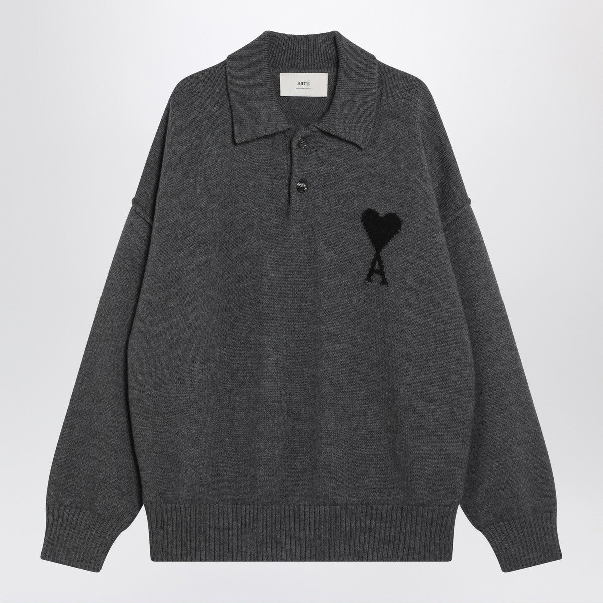 Ami Paris Grey polo-style Ami De Coeur sweater