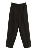 블랙 신축성 있는 허리밴드 앞쪽 포켓 2개 뒷면 패치 포켓 울 와이드 레그 팬츠 사이즈 및 핏 - 이 제품은 정사이즈로 제작되었습니다. 평소 착용하시는 사이즈를 선택하시길 권장합니다. 모델은 1.75m / 5피트 8인치이며 S 사이즈를 착용하고 있습니다.