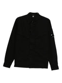 블랙 앞면 버튼 여밈 긴 소매 버튼 커프스 가슴 플랩 포켓 오가닉 코튼 오버셔츠