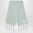 Pale green mohair and wool blend scarf by Jil Sander, featuring fringes at the ends and logo patch on the hem.