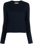 네이비 블루 캐시미어 파인 니트 라운드 넥 긴 소매, 골지 소매단, 골지 밑단 Mable 캐시미어 크루넥 스웨터