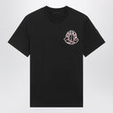 Moncler black cotton crewneck T-shirt featuring short sleeves and printed logo on the chest.