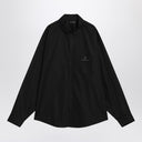 Camisa larga preta de algodão da Balenciaga, com fechamento frontal por botões, gola com botões, mangas longas com punhos abotoados, bolso aplicado no peito com bordado de letras do logo e barra curva. Tamanho e ajuste - Modelo veste tamanho 41 Medidas do modelo: Altura: 187 cm Peito: 102 cm Cintura: 76 cm Quadris: 92 cm