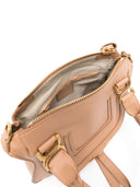 couro de bezerro marrom tabaco com textura granulada logo em relevo na frente detalhes em metal no anel fechamento frontal com aba e tira de amarrar fecho superior com zíper duas alças superiores enroladas alça de ombro ajustável e removível compartimento principal bolso interno com zíper e patch de logo forro de linho ferragens douradas bolsa pequena de couro Marcie Tamanho e Ajuste - Largura 30 cm / 11,81 pol Altura 20 cm / 7,87 pol Profundidade 10 cm / 3,94 pol Alça 15 cm / 5,91 pol Tira 52 cm / 20,47 pol.