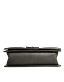 Bolsa de Ombro de Couro Verde Escuro Bolsa de Mão Cinza de Metal