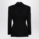 Jaqueta preta de lã virgem com abotoamento duplo da Valentino, apresenta lapelas pontiagudas, mangas longas com punhos abotoados, um bolso embutido no peito, dois bolsos com aba na frente e uma aba frontal com botões. Tamanho e ajuste - Modelo usa tamanho 40 IT Medidas do modelo: Altura: 179 cm Busto: 82 cm Cintura: 65 cm Quadris: 90 cm