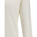 Thom Browne’s virgin wool Sweater features a ribbed crew neck, cuffs and hem. On the left sleeve stand out the iconic tone-on-tone bands, the brand’s signature detail that adds a touch of understated elegance to the garment.